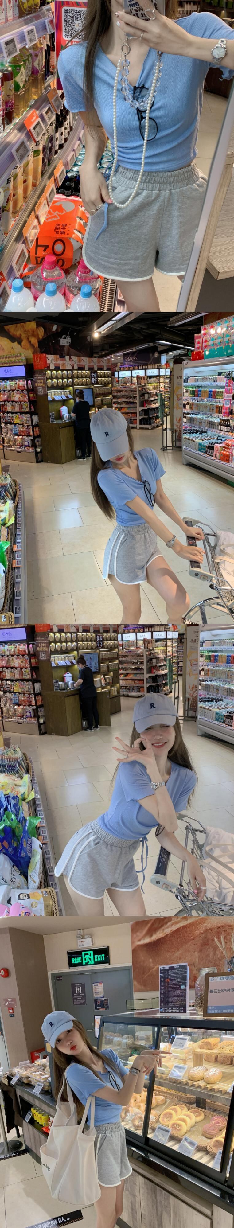 色:ピンクのTシャツ,青いTシャツ,黒のショートパンツ,グレーのショートパンツ