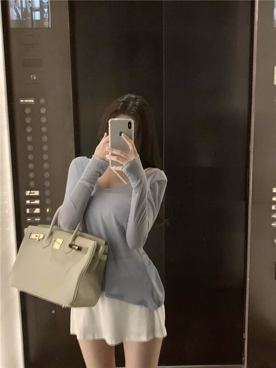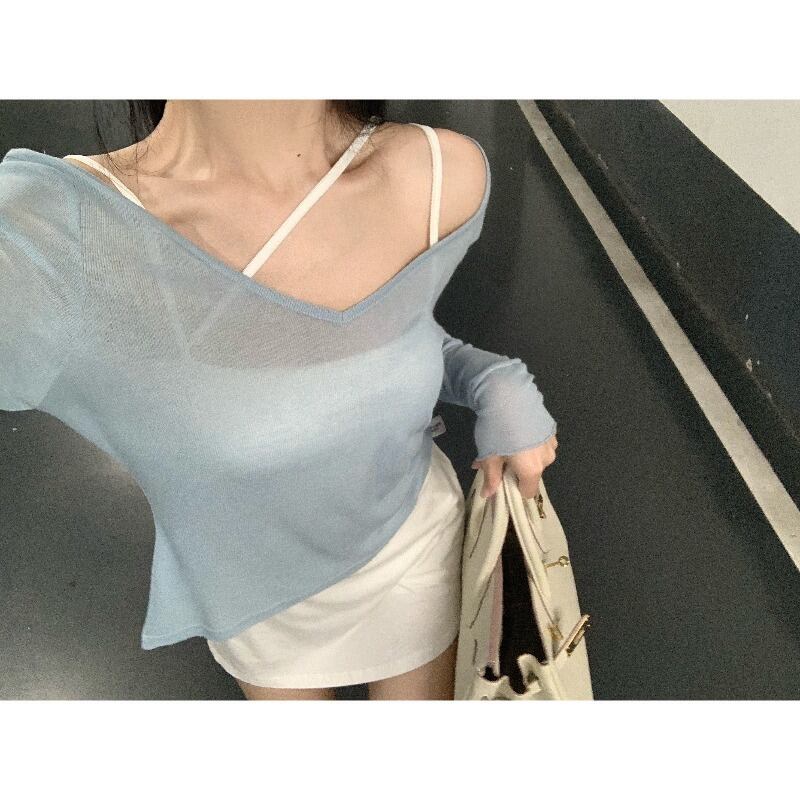 ストラップレス薄手ブラウス Tシャツ サマーVネックルーズトップス ロング 夏物 ピュア ブラックストロベリース34315562584