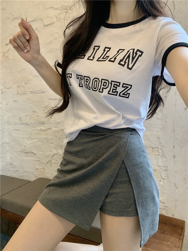 ブラックホワイトTシャツ 半袖スリーブトップス ショート ハーフスリーブ ブラックストロベリース54847393124