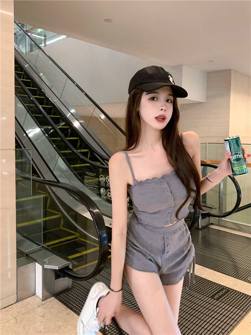 色:グレースリング,グレーのショートパンツ