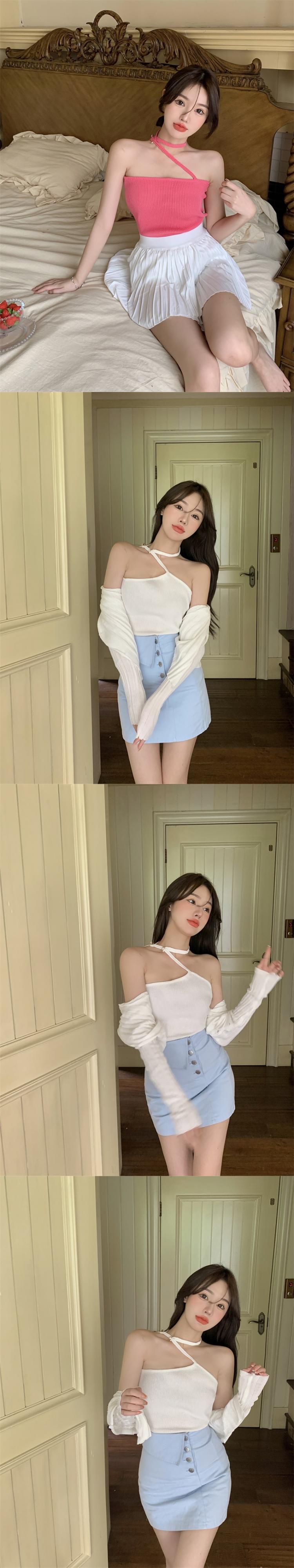 ブラックホルターニットサマースリムショート 夏物 ピュア ブラックストロベリース69339979992