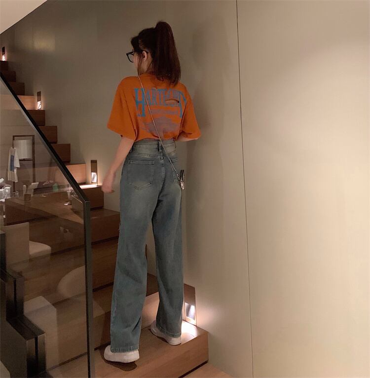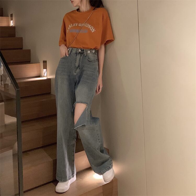ジーンズ サマー薄手ハイウェストウェストルーズワイドレッグパンツ 夏物 ワイドパンツ ブラックストロベリース98001310122