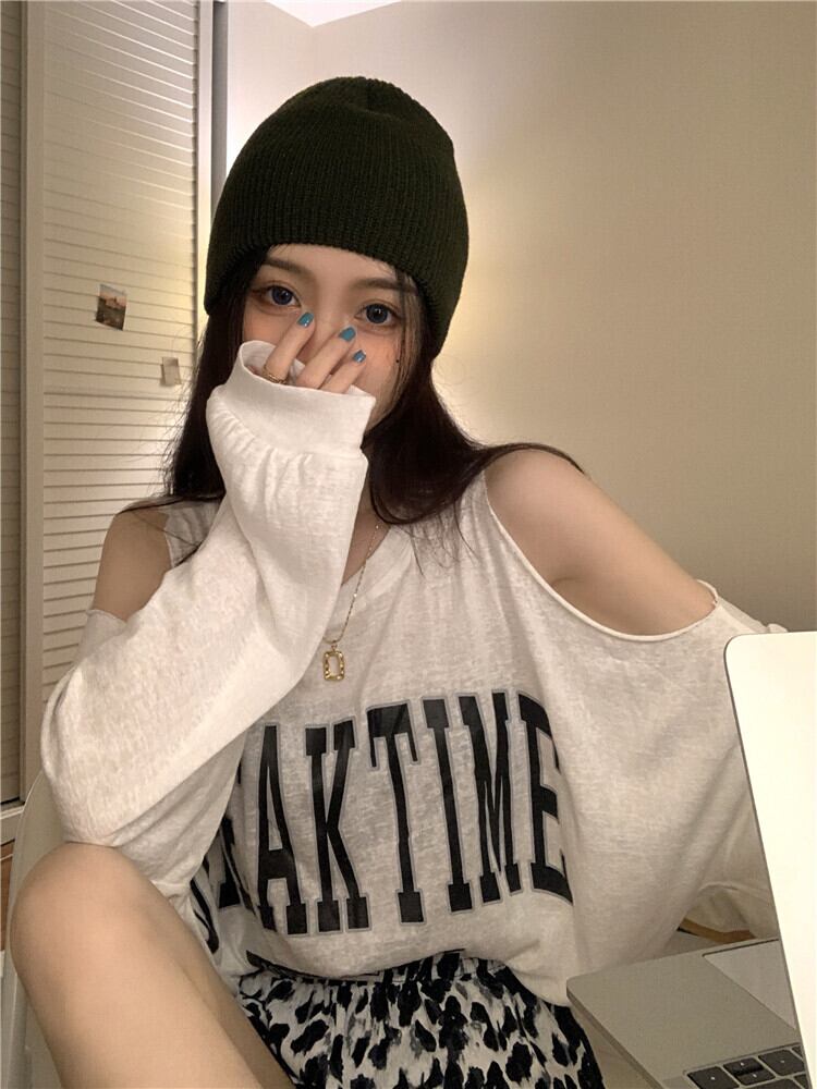 Tシャツ シャツ ストラップレスルーズサマー薄手ホワイトトップス ロング 夏物 ブラックストロベリース66861807485