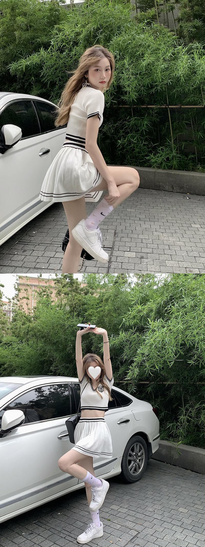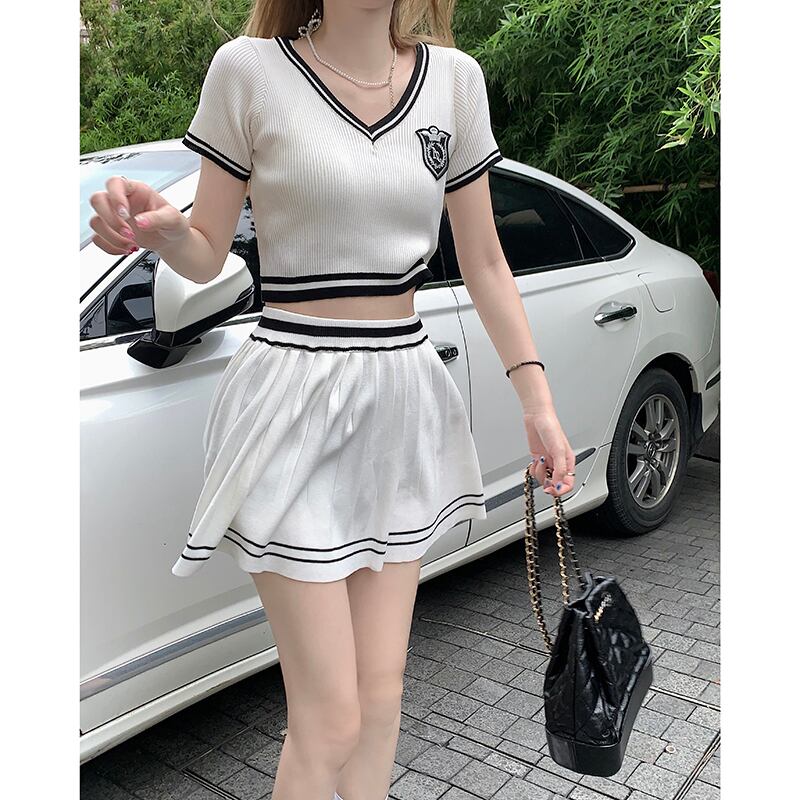 スタイルサマーニットTシャツ プリーツスカート 大人ガーリー スウィート キュート カジュアル 夏物 ブラックストロベリース26966848987