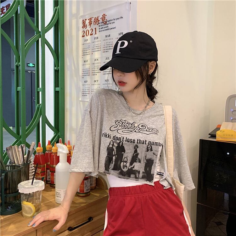 Tシャツ サマーショートプリント柄スタイルトップス 大人ガーリー スウィート キュート カジュアル かわいい 夏物 ブラックストロベリース62043072382