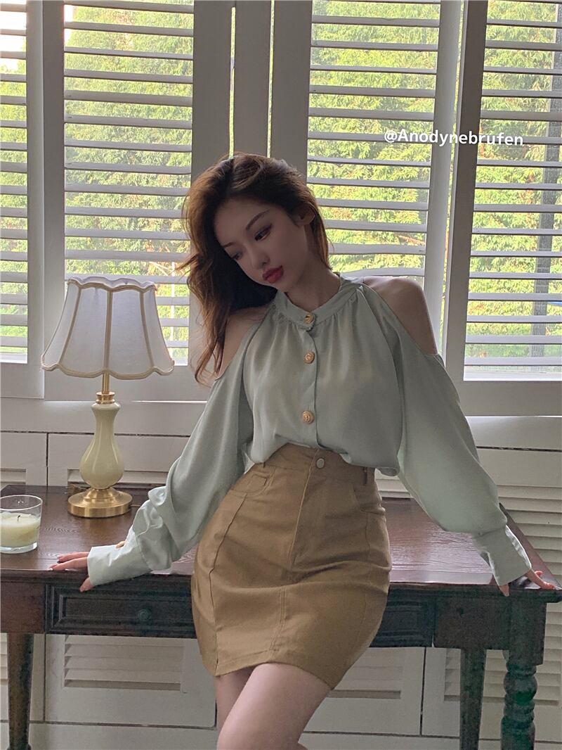 シャツ サマー薄手トップス ロング 夏物 オフショルダー ブラックストロベリース90304609842
