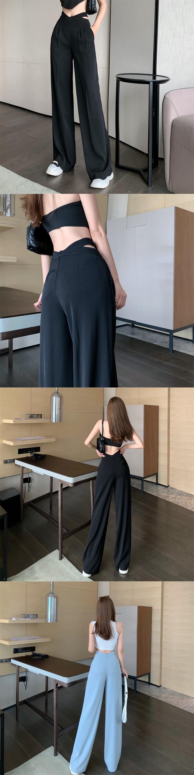 カジュアルパンツ サマー薄手ブラックハイウェストルーズ 夏物 ブラックストロベリース24177877543
