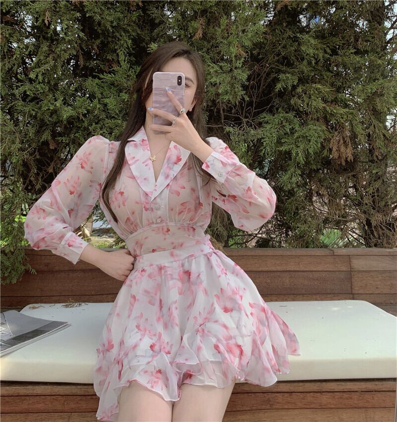 シフォンフローラルスカート ハイウェストウェストAラインショートサマースタイル ピンク 夏物 花柄 ブラックストロベリース78703602240