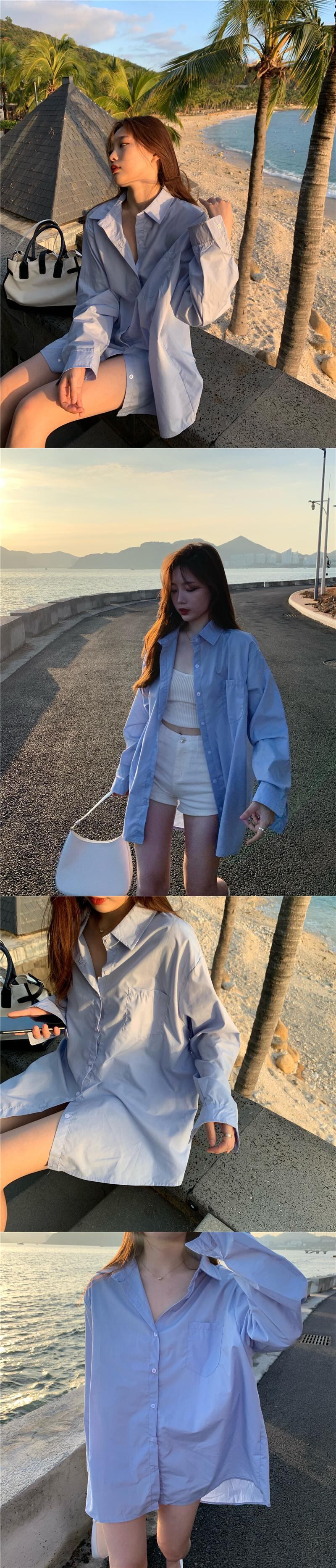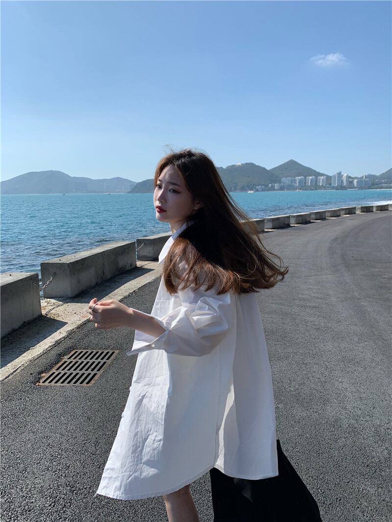 シャツ ジャケット スプリングサマー薄手ホワイトルーズスタイルトップス ロング 春物 夏物 ブラックストロベリース41877508153