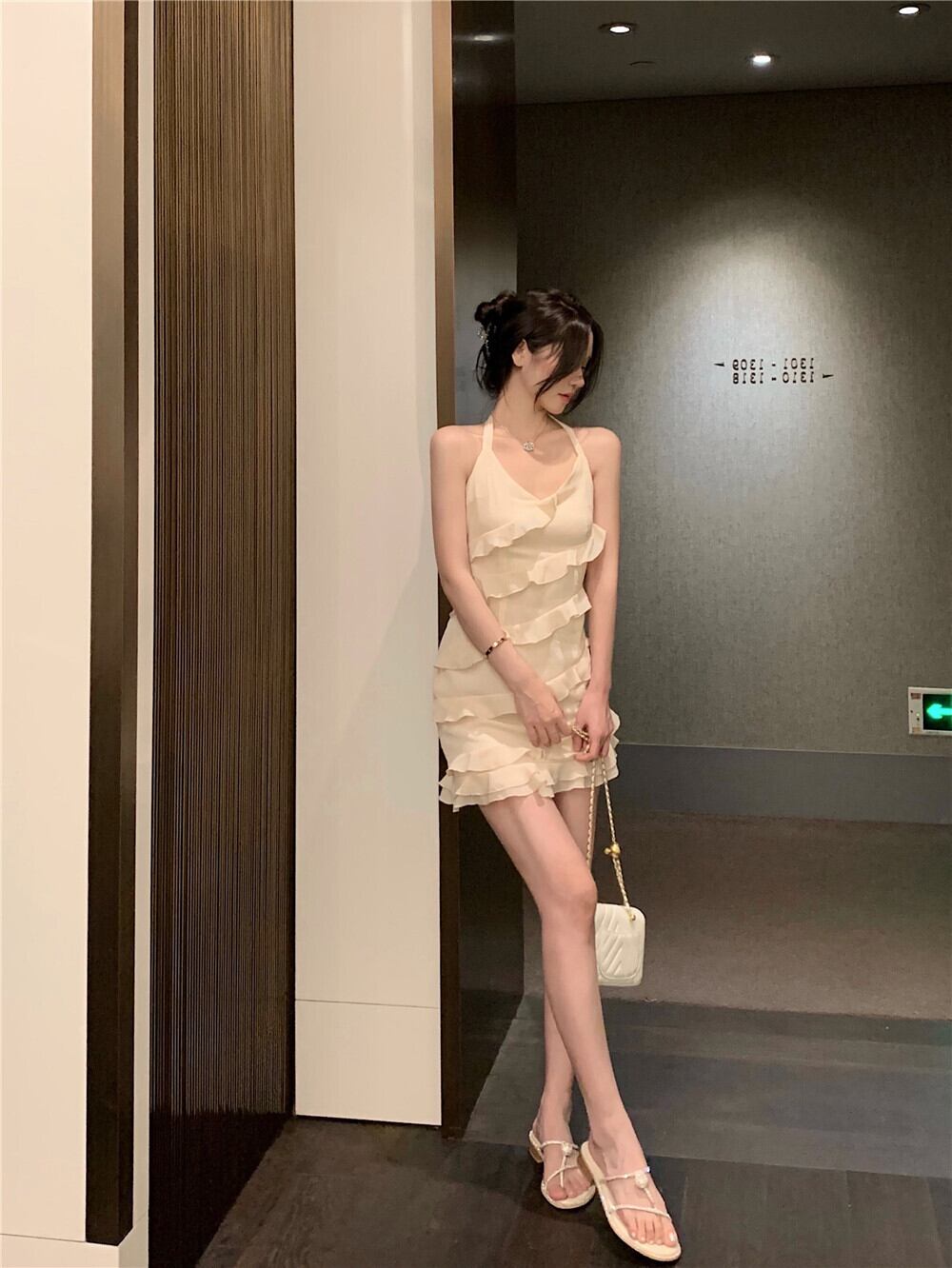 シフォンドレス サマーショートスカート ホワイトウェスト 大人ガーリー スウィート キュート カジュアル 夏物 ブラックストロベリース54778993953