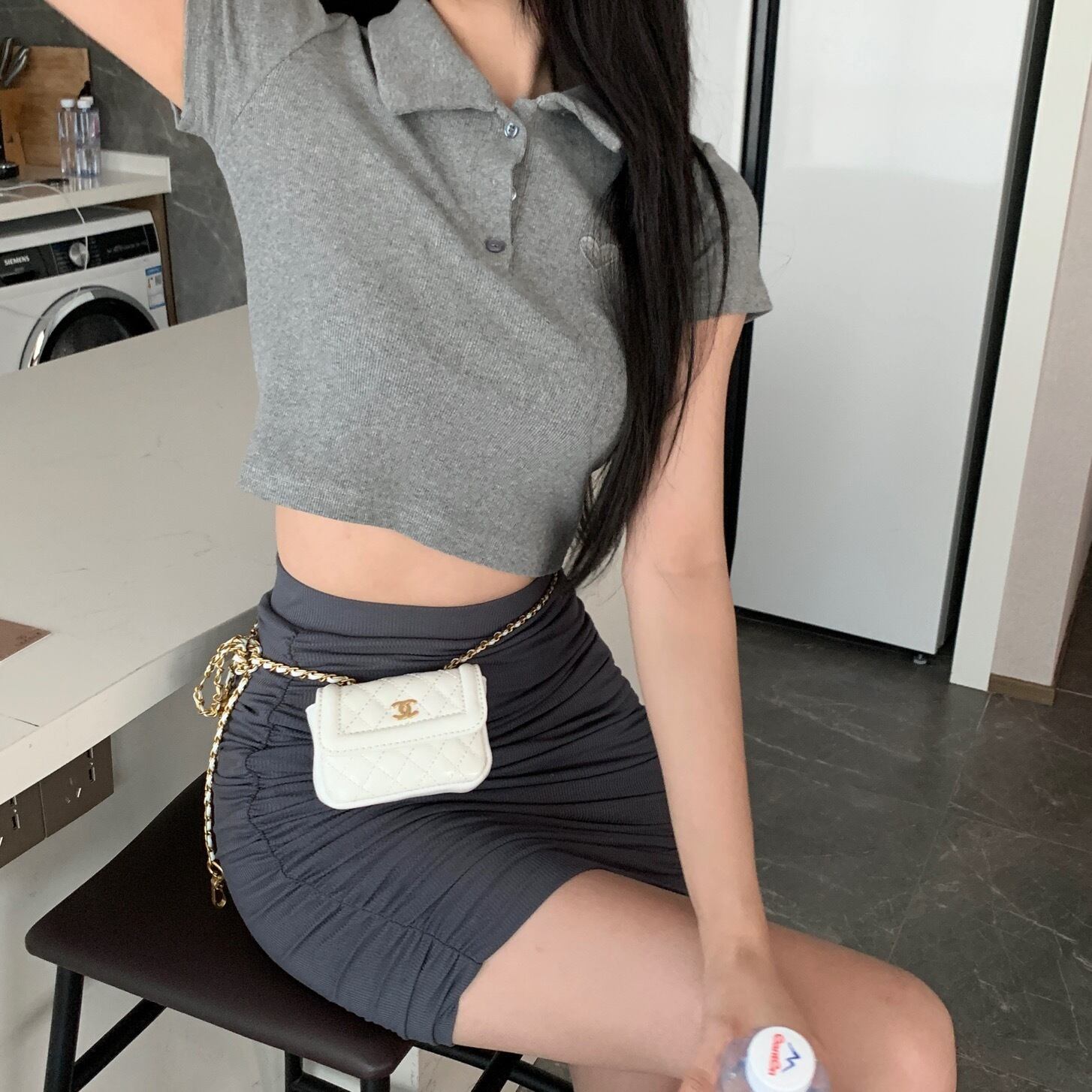 スタイルカラーTシャツ サマー薄手グレーショートスリムトップス 夏物 ブラックストロベリース95075161443