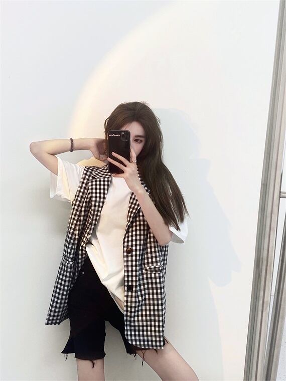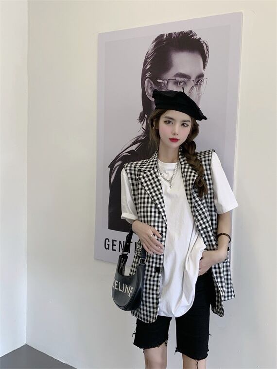 ブラックスタンダードレッド格子柄ジャケット ソリッド カラーTシャツ レトロ ソリッドカラー ブラックストロベリース84504034487