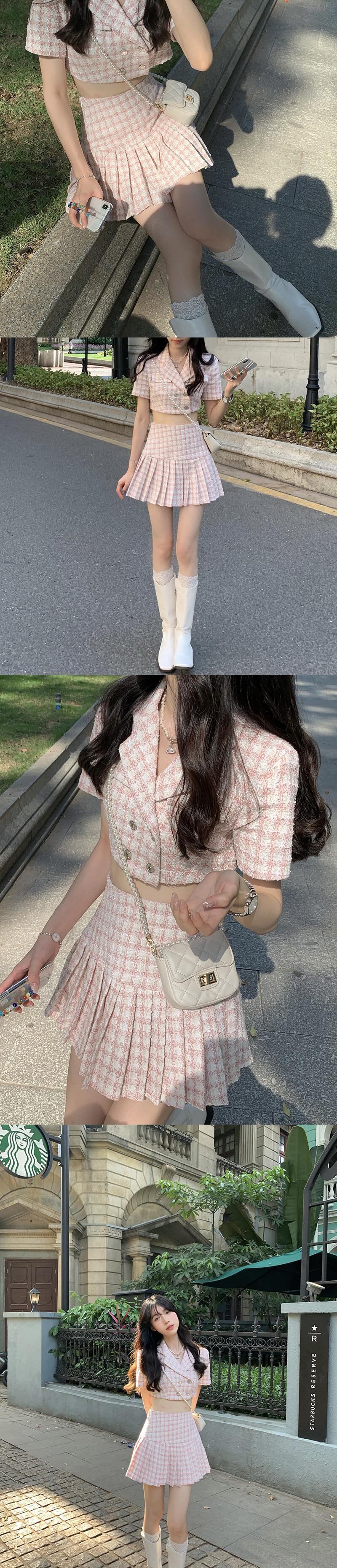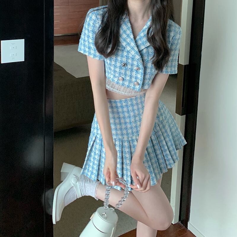 色:ピンクトップ,ブルートップ,ピンクプリーツスカート,ブループリーツスカート