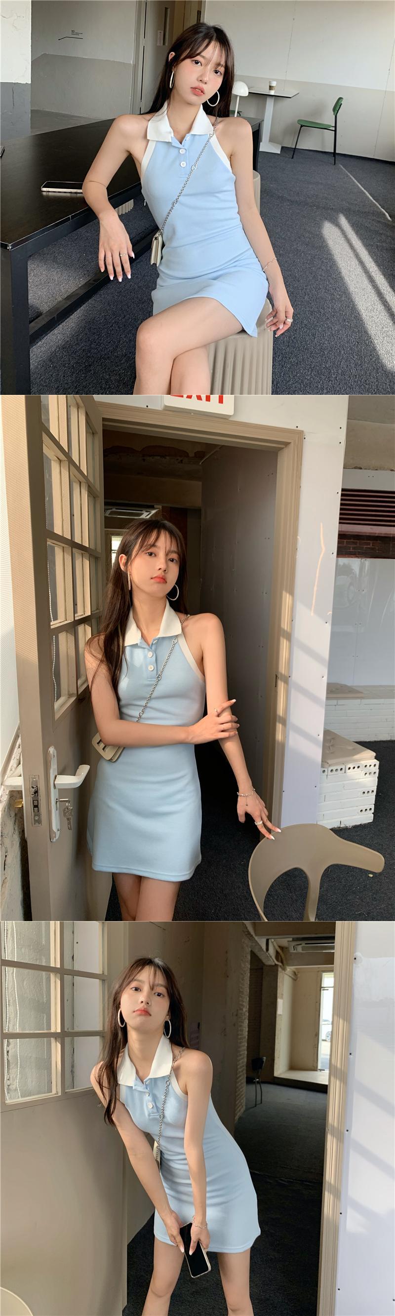 ドレス カラースタンダードショートスカート サマーホルター レトロ 夏物 ピュア ブラックストロベリース21068345062