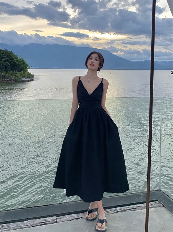 ドレス スタイルブラックサマースカート ふわふわ 夏物 ブラックストロベリース24676504904