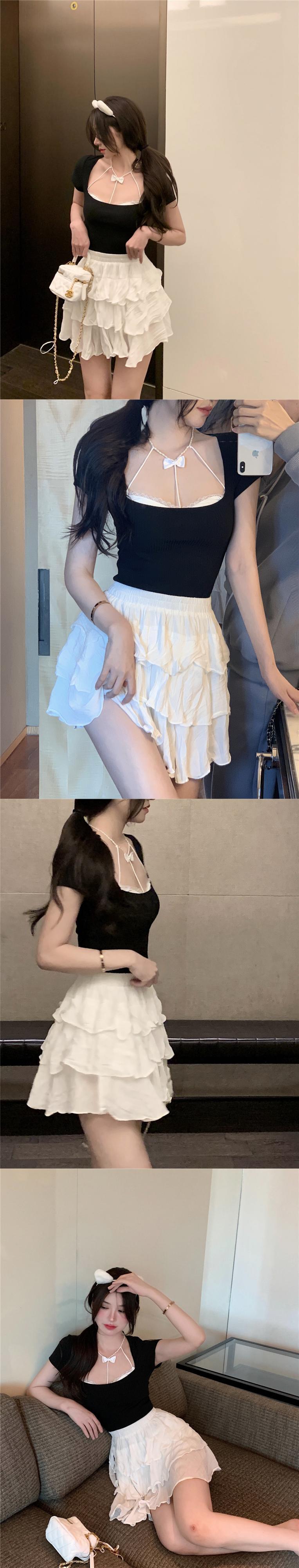 Tシャツ サマー薄手スリムブラックトップス 夏物 ピュア スクウェア ブラックストロベリース39479150756