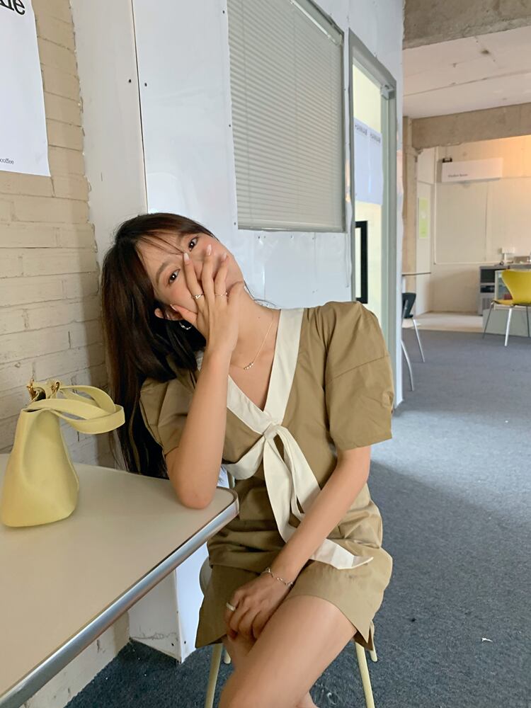 スリーブウェストショートスカート サマースタイル半袖 レース ハーフスリーブ 夏物 レースアップ ブラックストロベリース42847748394