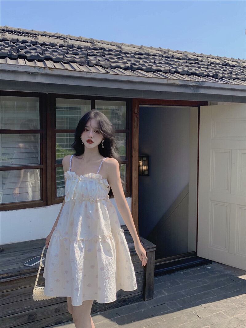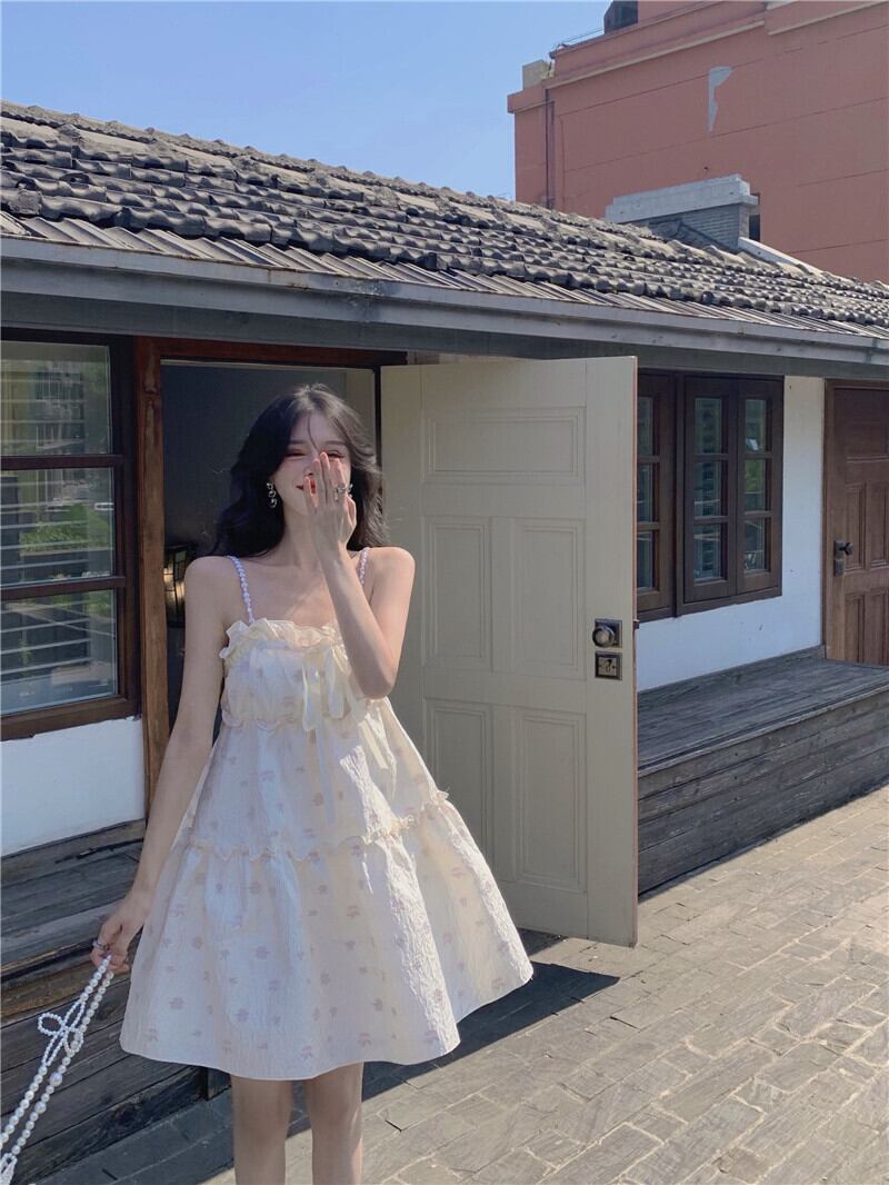 フローラルドレス サマーショートスカート 大人ガーリー スウィート キュート カジュアル ふわふわ 夏物 花柄 ブラックストロベリース17104573382