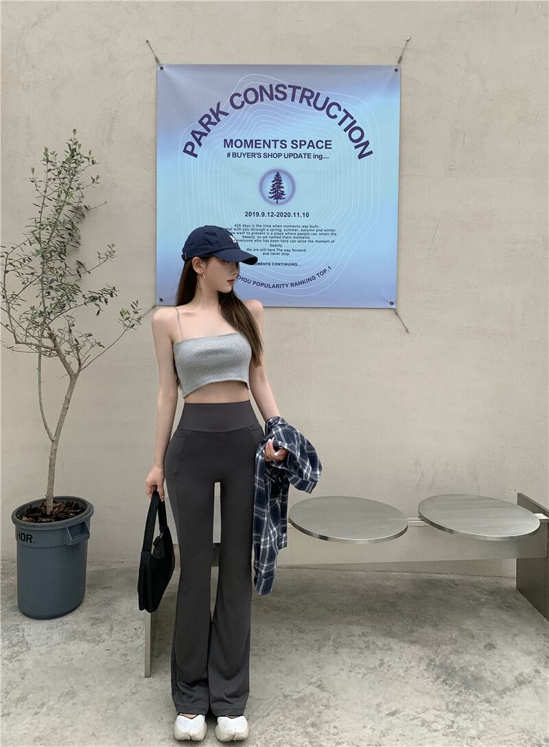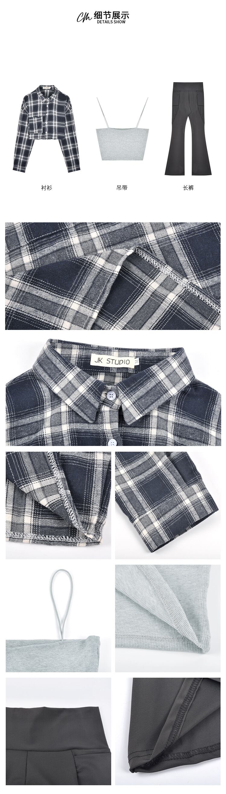 色:黒のチェック柄シャツ,グレーのチューブトップ,カーボンパンツ
