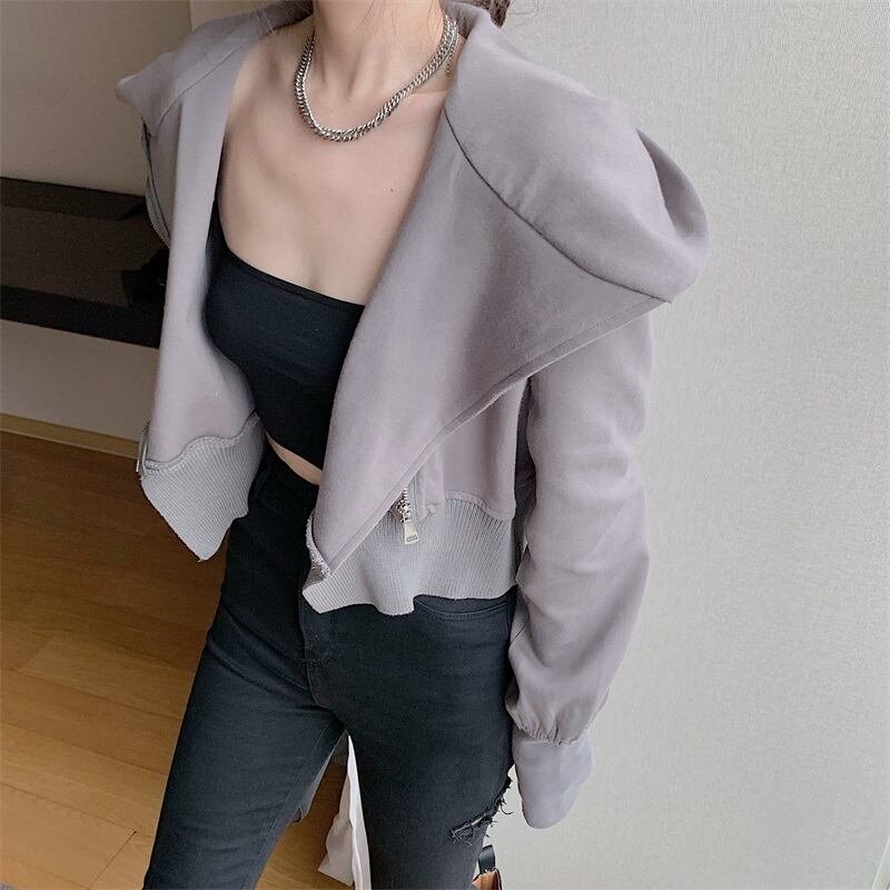 ルーズジッパーフードセーター カーディガンジャケット スプリングオータムグレートップス 春物 秋物 ブラックストロベリース62692230732