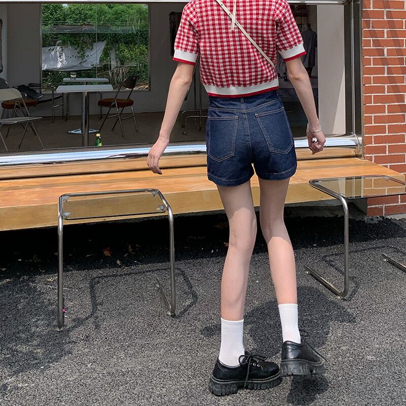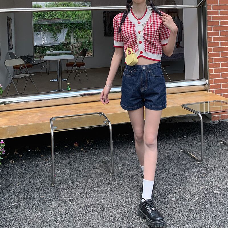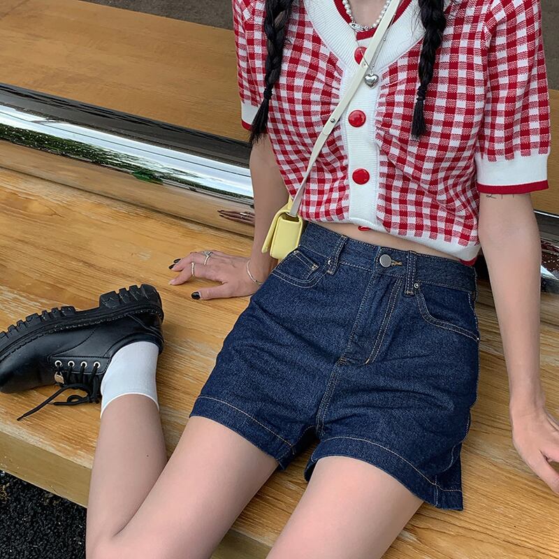 ジーンズ ウェストショーツ サマーパンツ 薄手ダークルーズワイドレッグ 夏物 ブルマー ワイドパンツ ブラックストロベリース43781138247