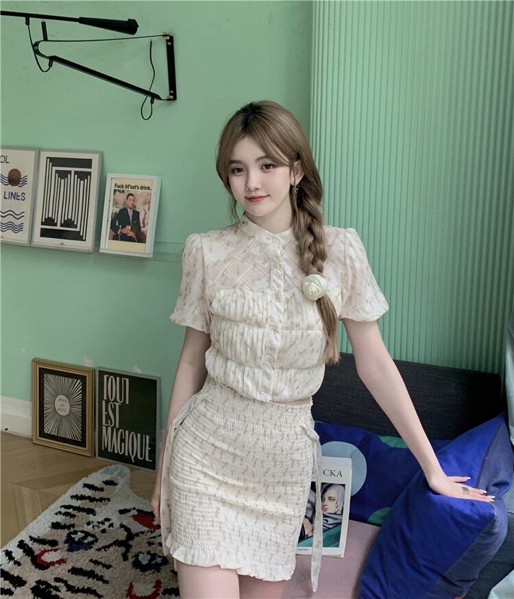 フローラルシャツ スリーブショートサマーブラウス 夏物 花柄 ブラックストロベリース30123766308