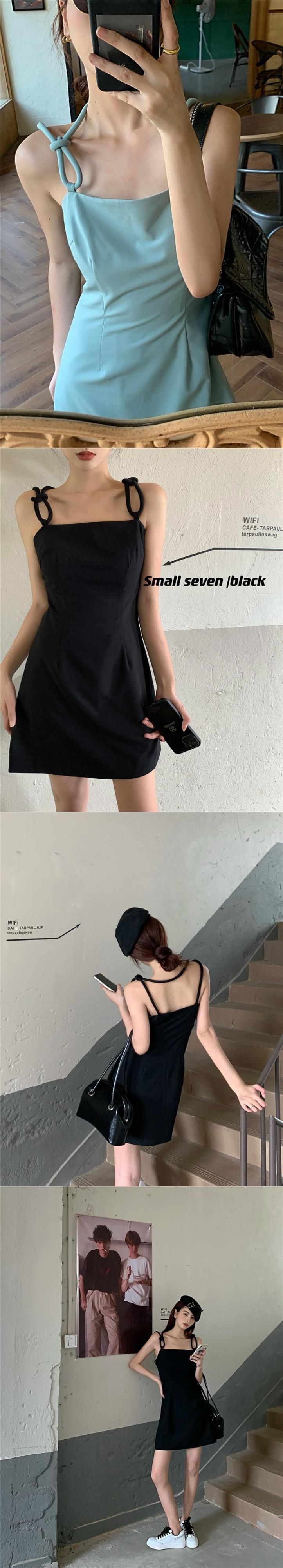 ドレス ブルーショートスカート サマー薄手スタイル 夏物 ブラックストロベリース80978875104