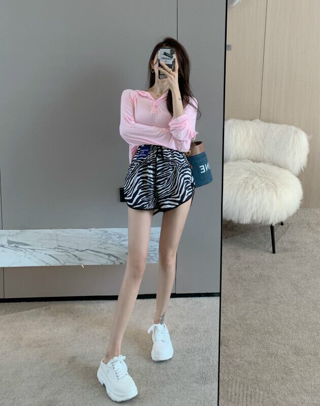 パターンカジュアルパンツ ハイウェストウェスト薄手ショーツ サマールーズ 夏物 ブルマー ブラックストロベリース34719838664