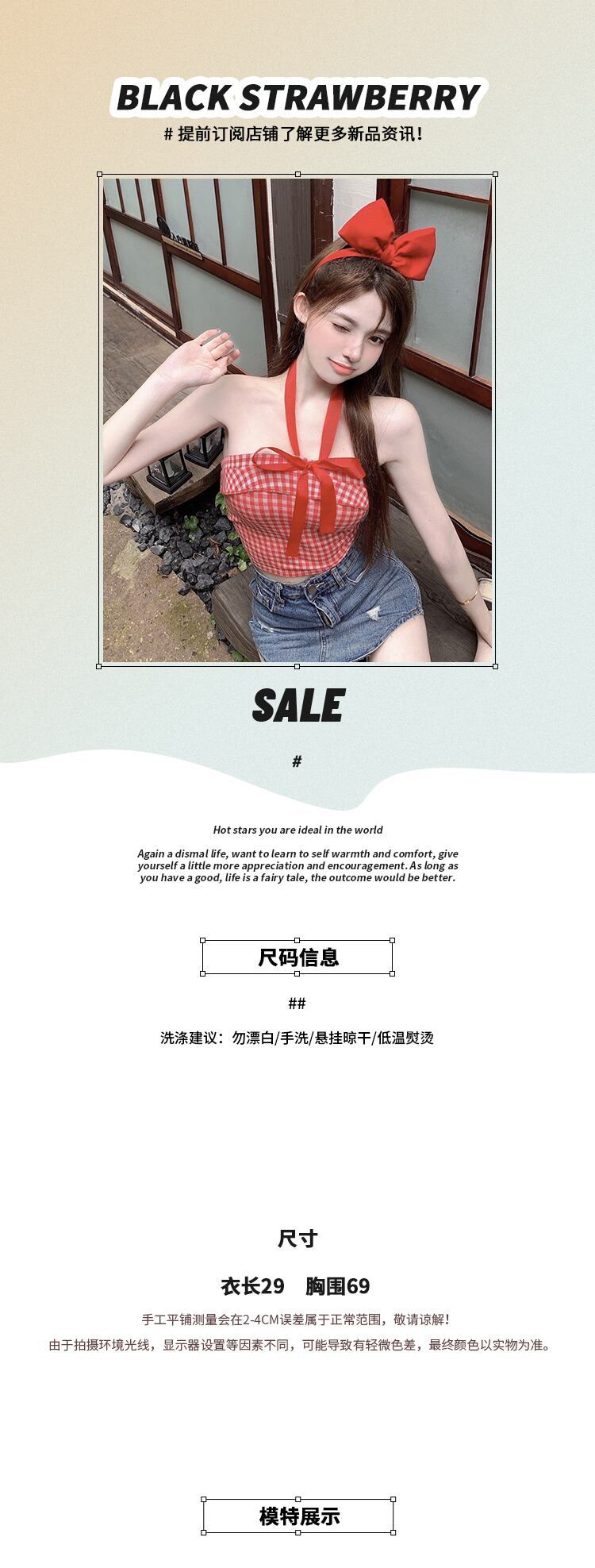 格子柄サマーリボンレッドホルタートップス 夏物 ピュア ブラックストロベリース56497545409