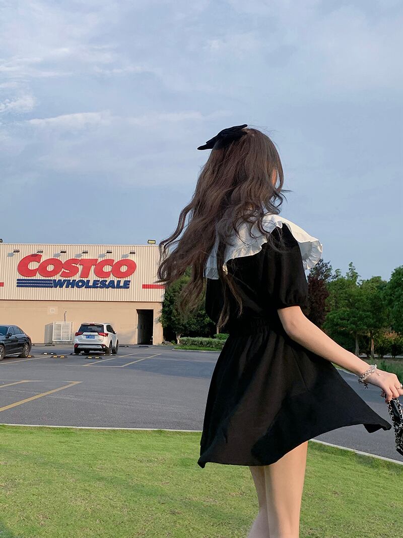カラースリーブTシャツ レディースサマー薄手ショートブラックトップス 大人ガーリー スウィート キュート カジュアル 夏物 ブラックストロベリース47681775740