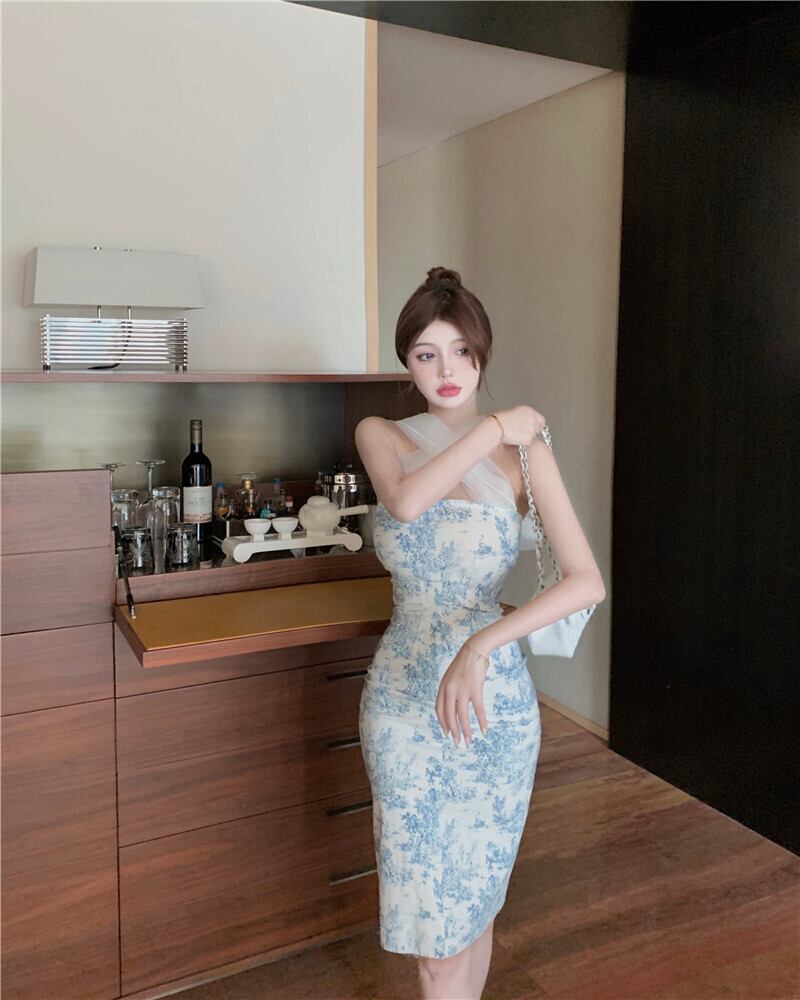 フローラルドレス メッシュホルターショートスカート サマーウェストトップス 夏物 花柄 ブラックストロベリース25427549015