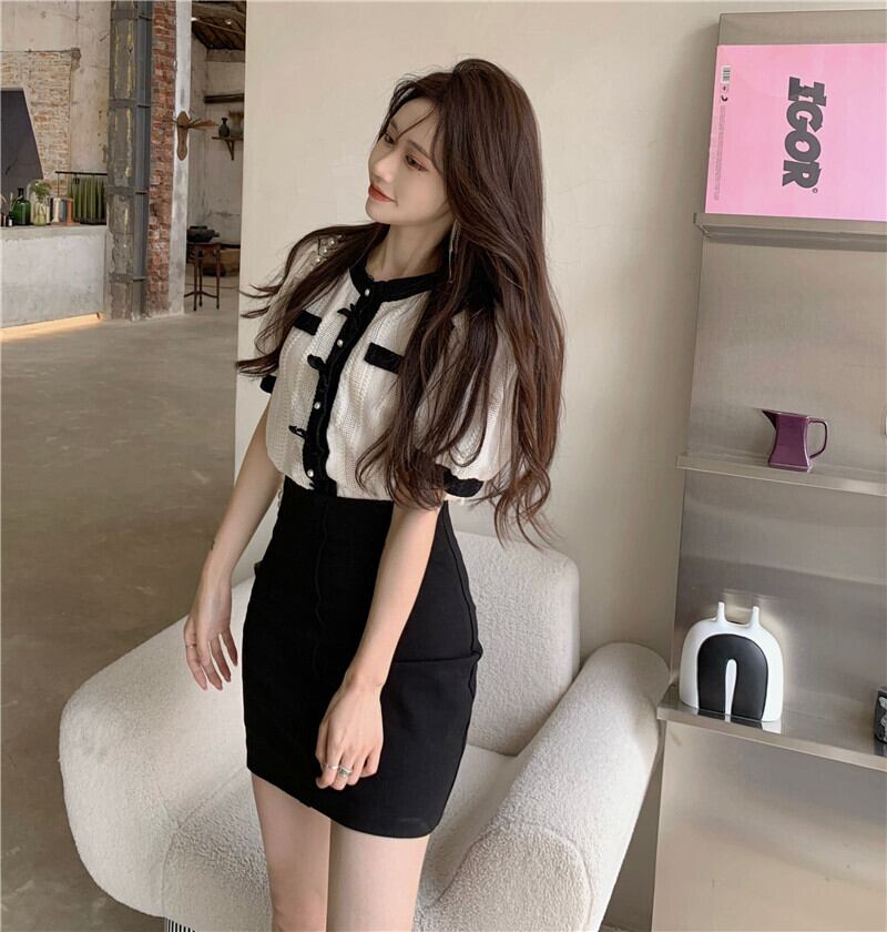 レースリボンニットカーディガンジャケット レディースサマー薄手スリーブショート半袖トップス ハーフスリーブ 夏物 ブラックストロベリース69198134346