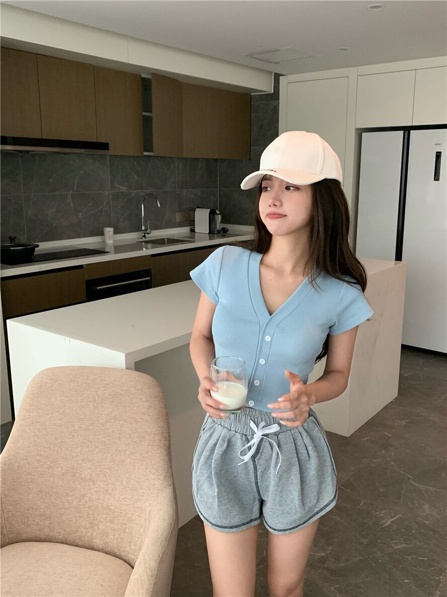 ニットTシャツ Vネックカーディガンサマートップス ピンク 大人ガーリー スウィート キュート カジュアル 夏物 ピュア ブラックストロベリース56860179399
