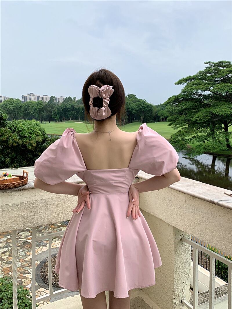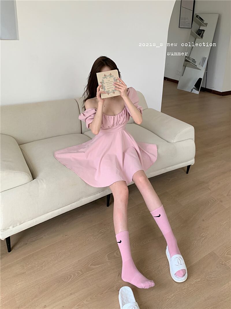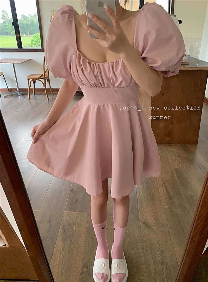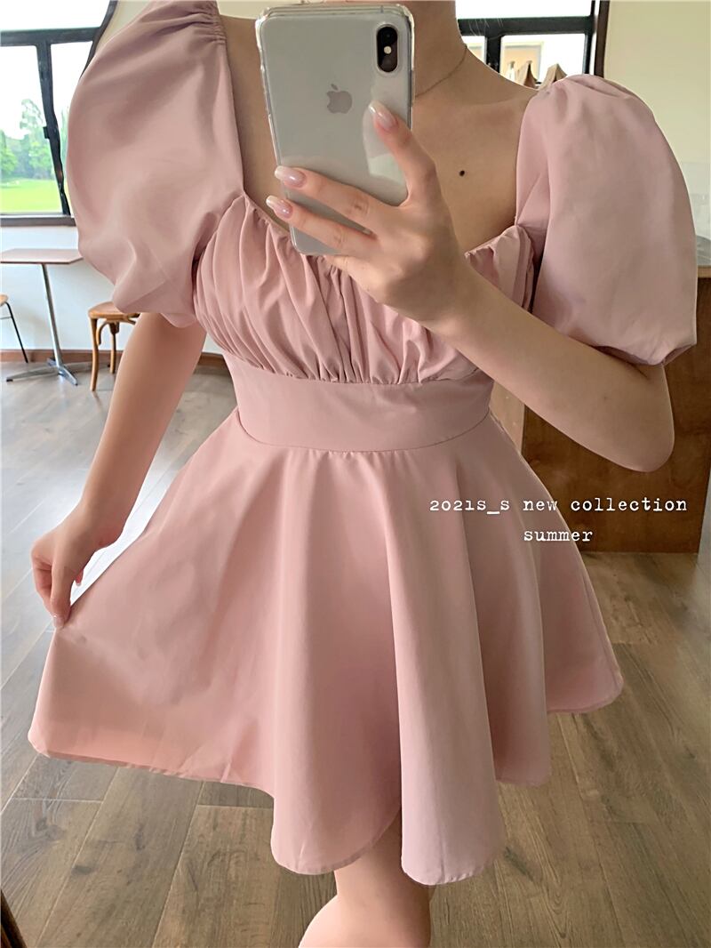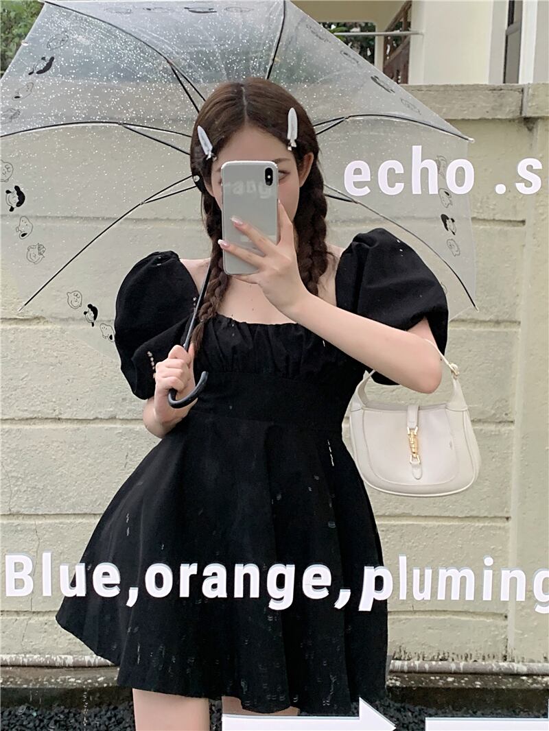 スリーブドレス レディースサマーショートスカート ブラックウェスト 夏物 スクウェア ブラックストロベリース46860557628