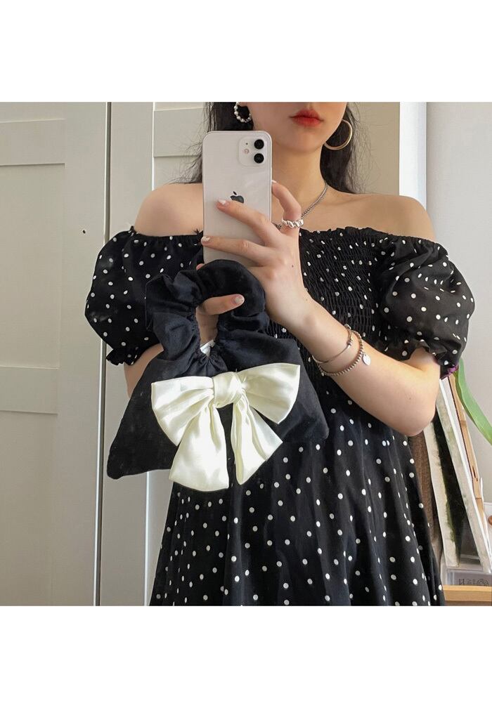 水玉ドレス ルーズ薄手スリーブショートスカート サマーブラック 夏物 ブラックストロベリース36054200093