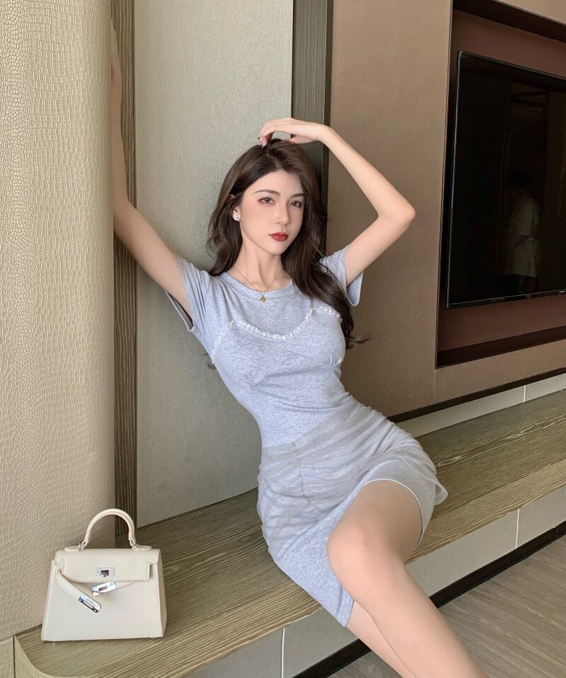 メッシュドレス ウェストショートスカート サマーツーピース薄手ブルー 夏物 ブラックストロベリース29908682613