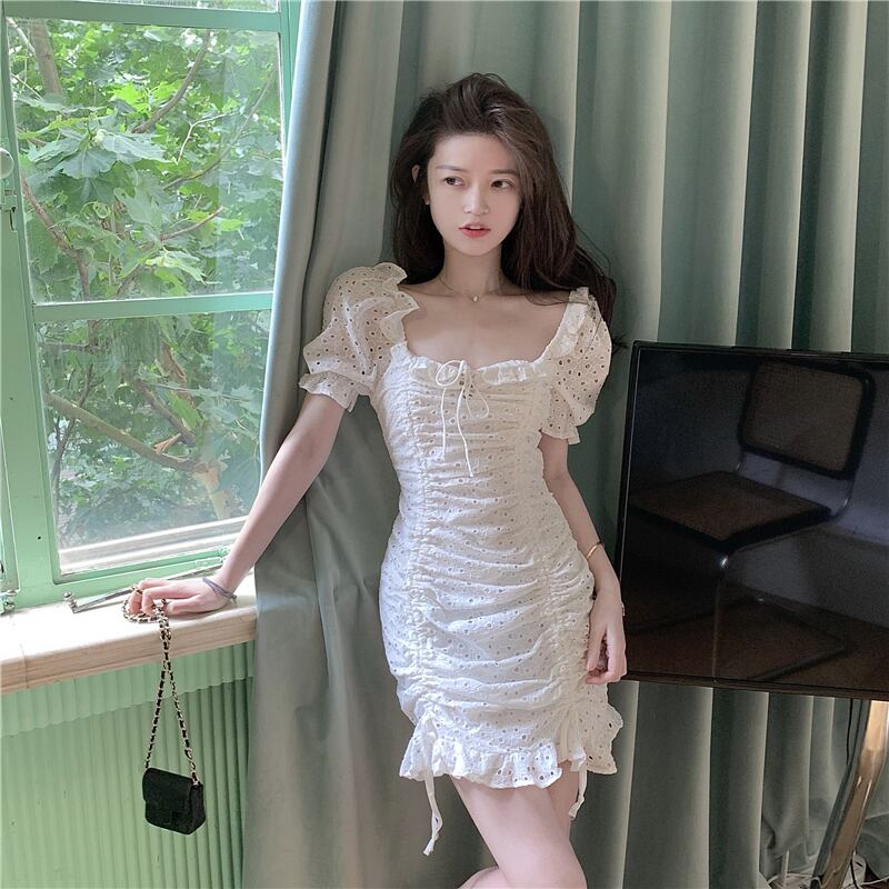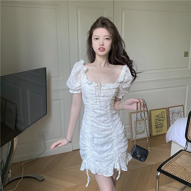 ドレス ホワイトウェストショートスカート サマーカラー 夏物 スクウェア ブラックストロベリース40719692606