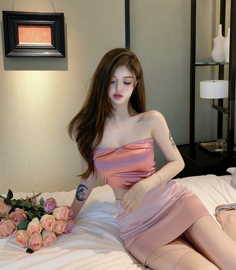 ストライプトップス サマーショートストラップレス 夏物 ピュア ブラックストロベリース59496837662