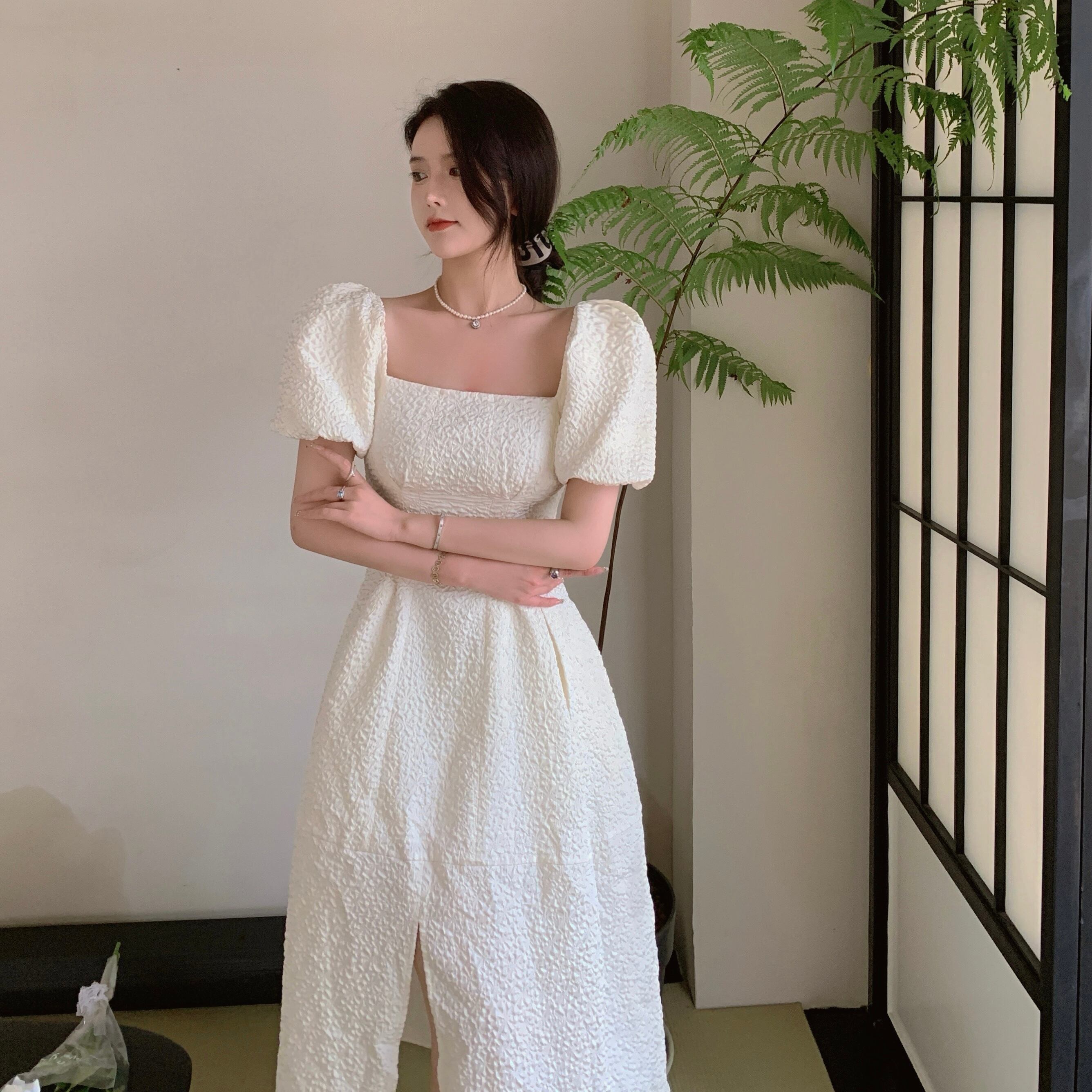 ドレス カラースタンダードスタイルスリーブ半袖スカート サマーウェスト ショート レトロ レース ハーフスリーブ 夏物 スクウェア ブラックストロベリース28831592463