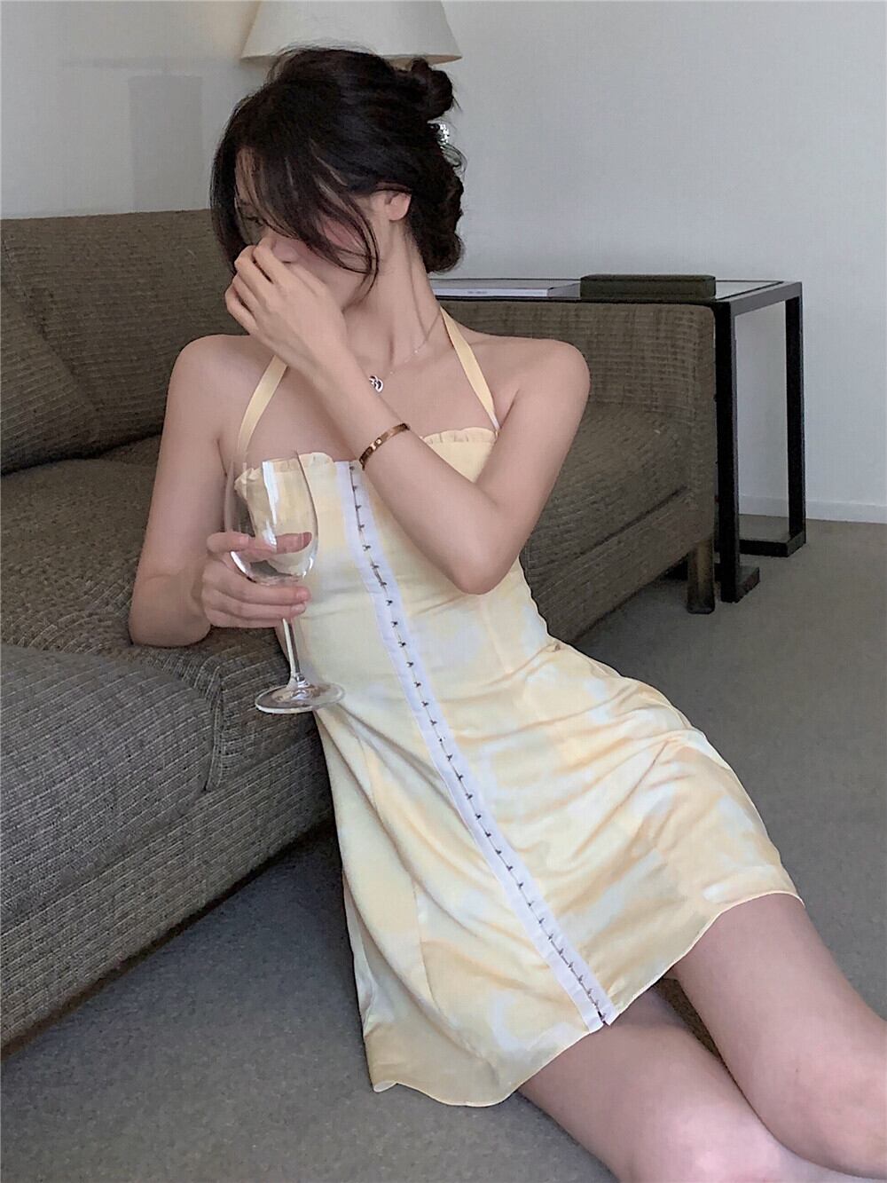 ドレス ウェストスカート サマーホルター 夏物 ブラックストロベリース6368250954
