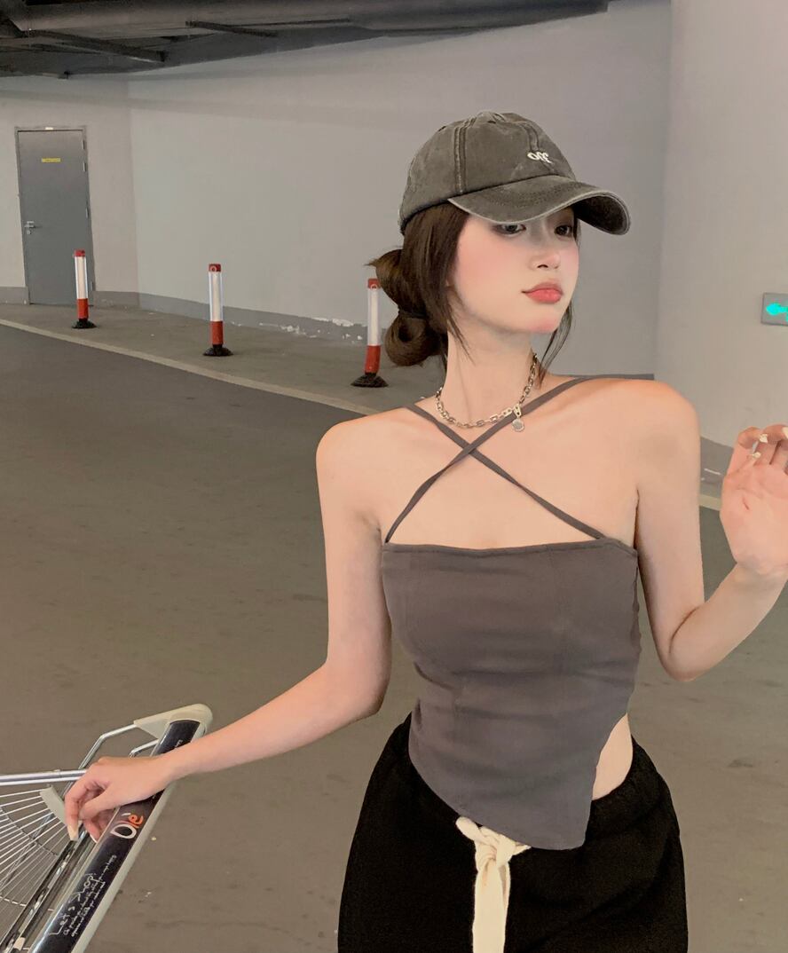 サマーグレーホルタートップス 夏物 ピュア ヨーロピアン ブラックストロベリース91217103375