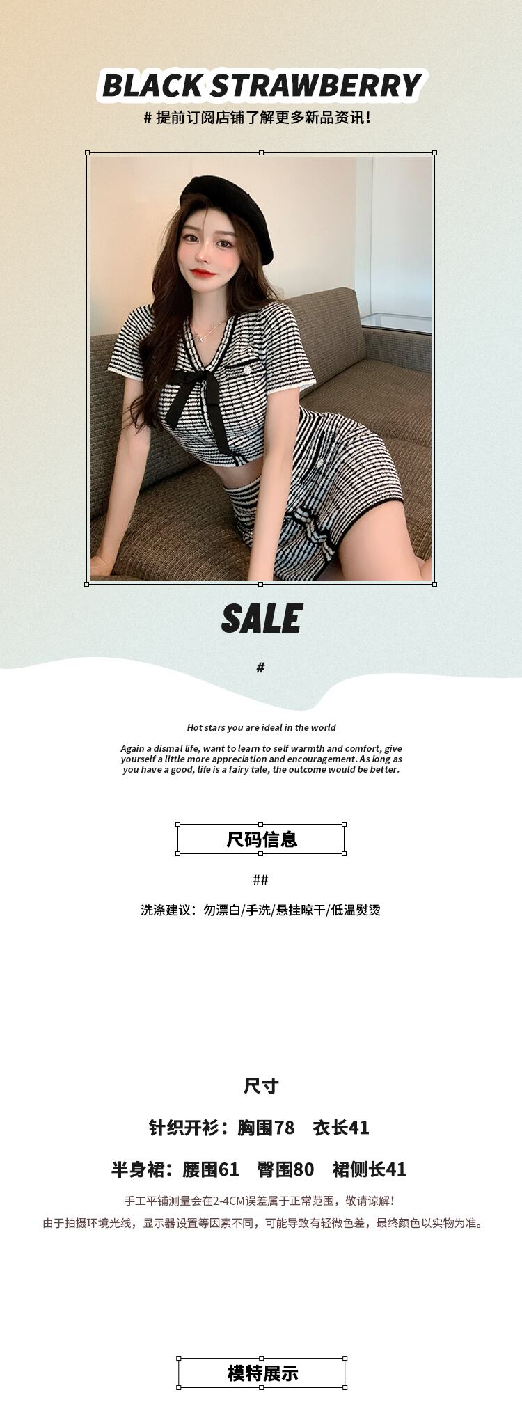 サマーリボントップス ストライプスカート 夏物 ブラックストロベリース77363830014