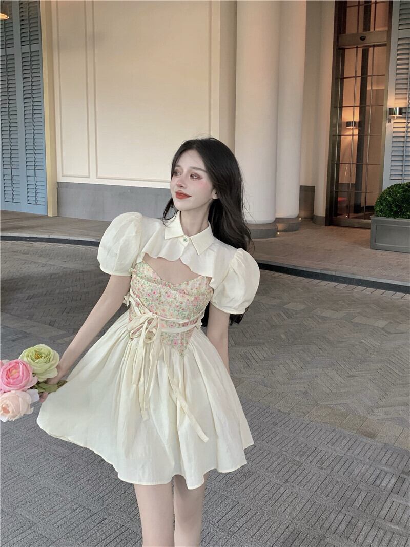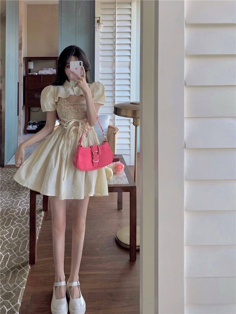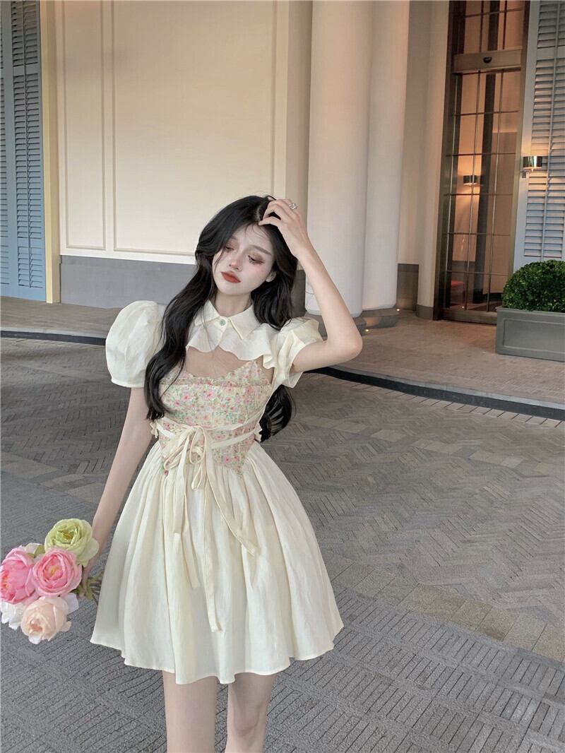 フローラルドレス ショートスカート サマーウェスト ふわふわ 夏物 花柄 ピュア ステッチ ブラックストロベリース41581633851