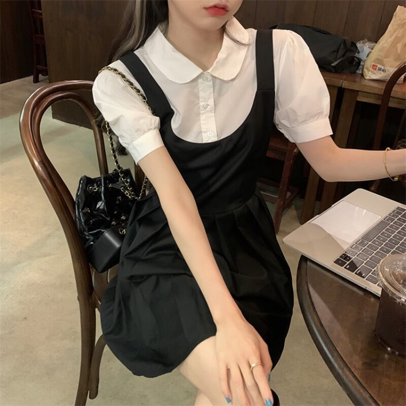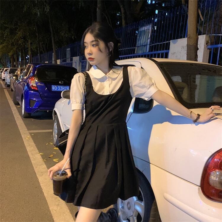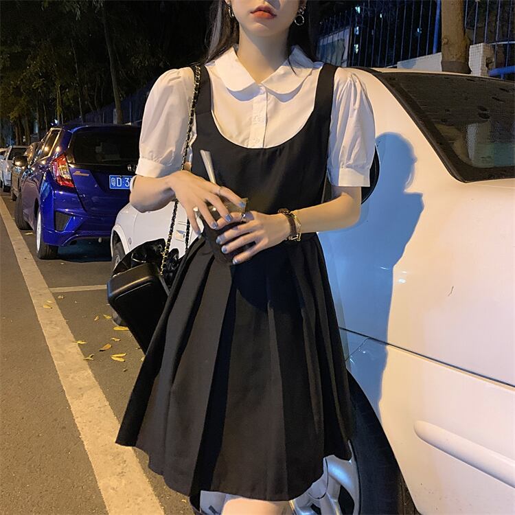 ドレス カラーショートスカート サマー 夏物 ブラックストロベリース17296048266