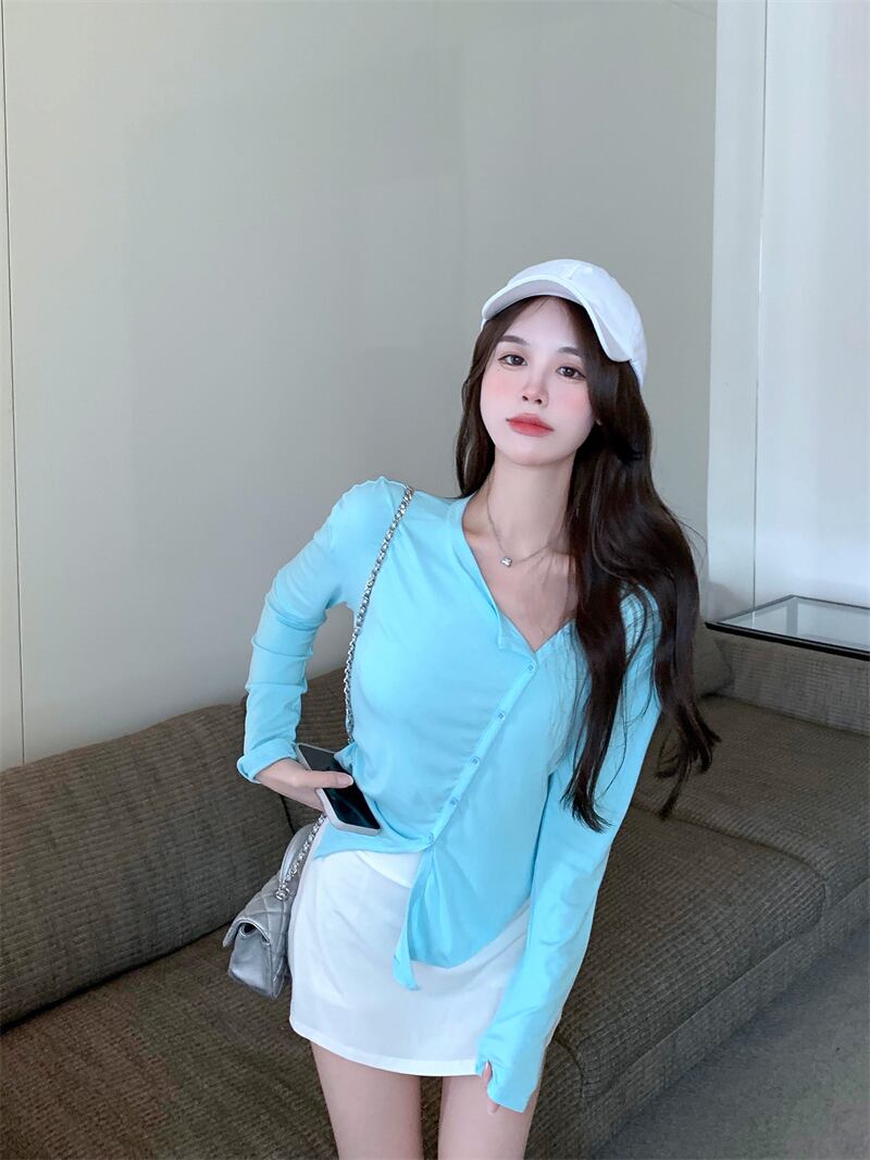 Tシャツ シャツ ルーズサマーブルー薄手トップス ロング 夏物 ブラックストロベリース68619947682