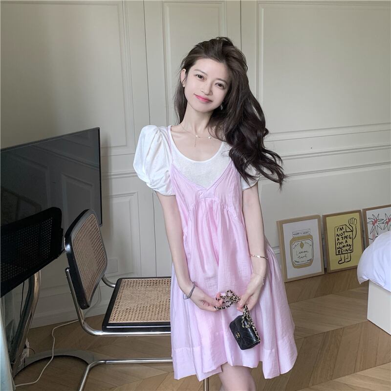ドレス ショートスカート サマースタイル ピンク 夏物 ブラックストロベリース44440818477
