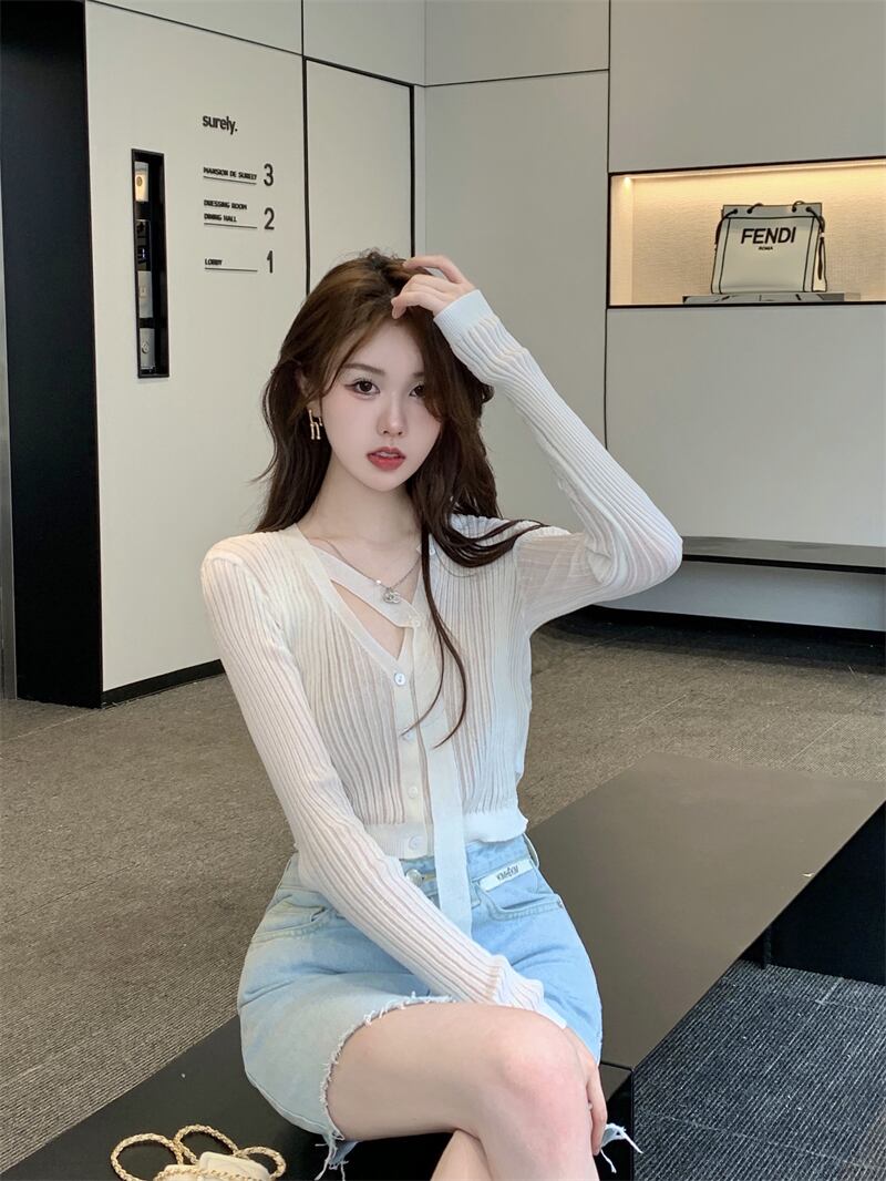 ニットセーター ショートホワイトカーディガンジャケット サマートップス ロング 夏物 ブラックストロベリース73229999422