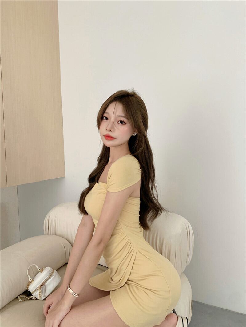 ニットドレス バンドスカート サマーイエローホルター 夏物 ヨーロピアン ブラックストロベリース44102041359