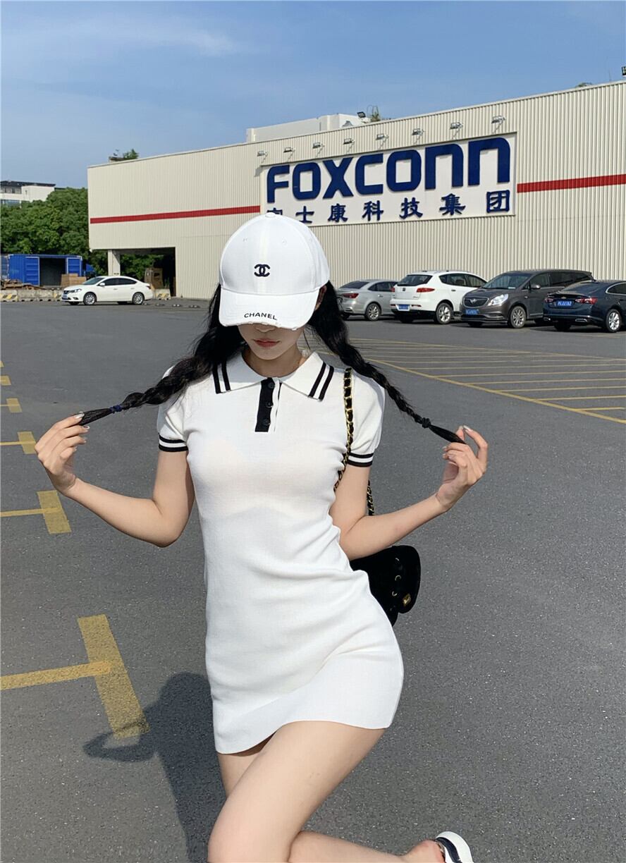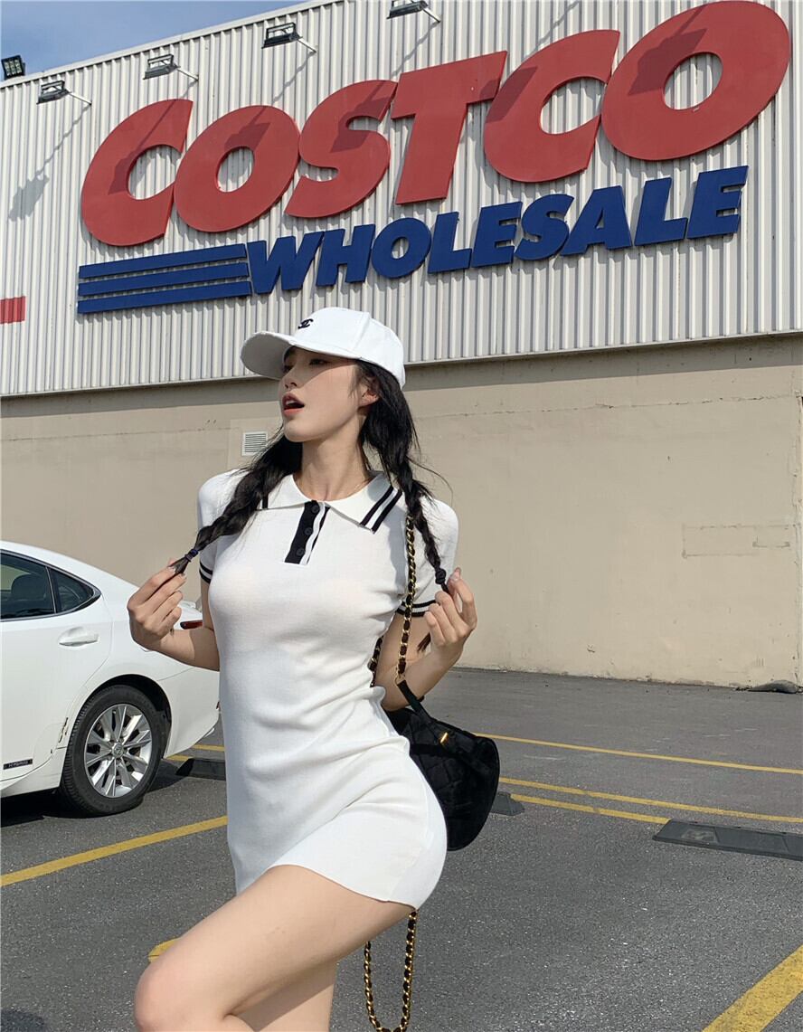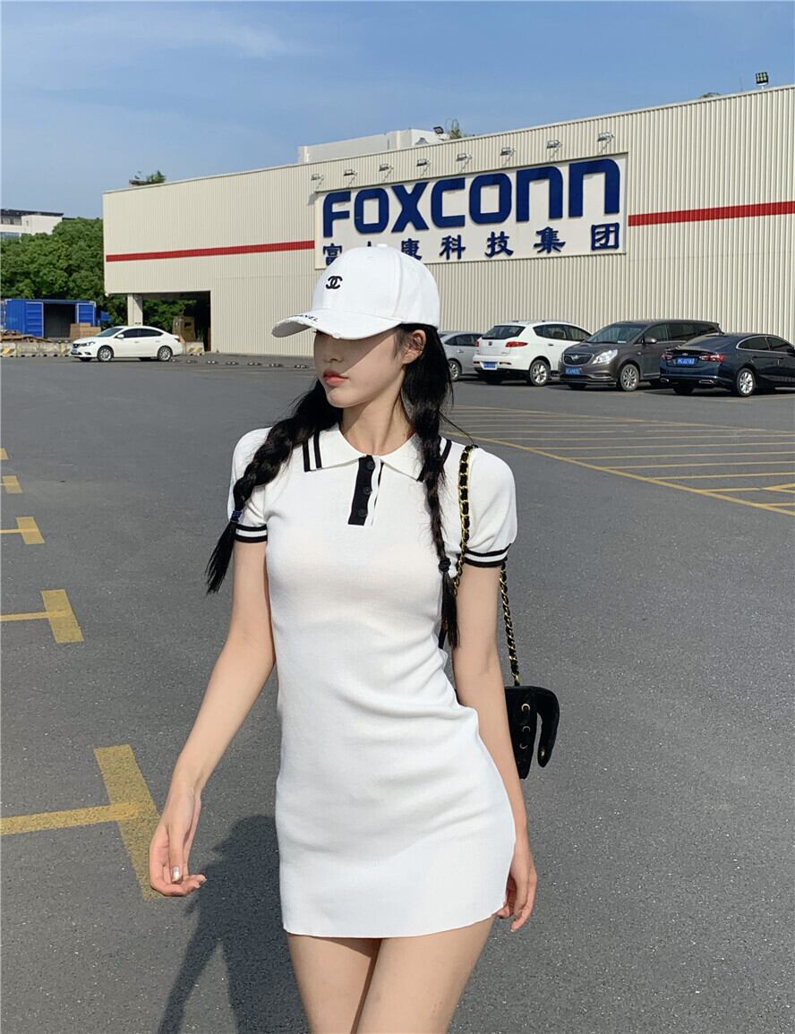 ドレス レディーススタンダードカラーショートスカート サマーホワイト レトロ 夏物 ブラックストロベリース56724830543