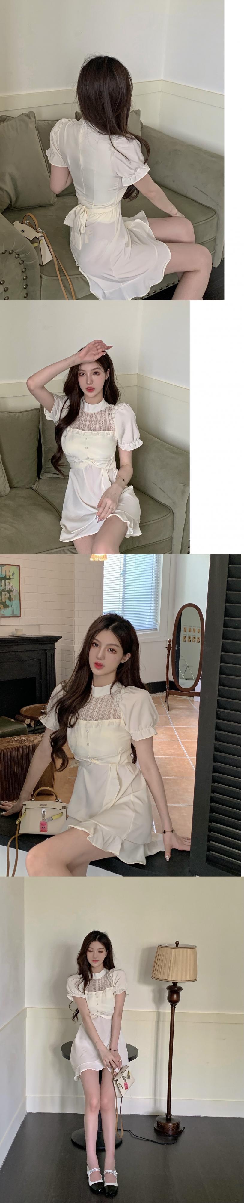 レースドレス ショートスカート サマーウェストホワイト 夏物 ピュア ブラックストロベリース28685239499